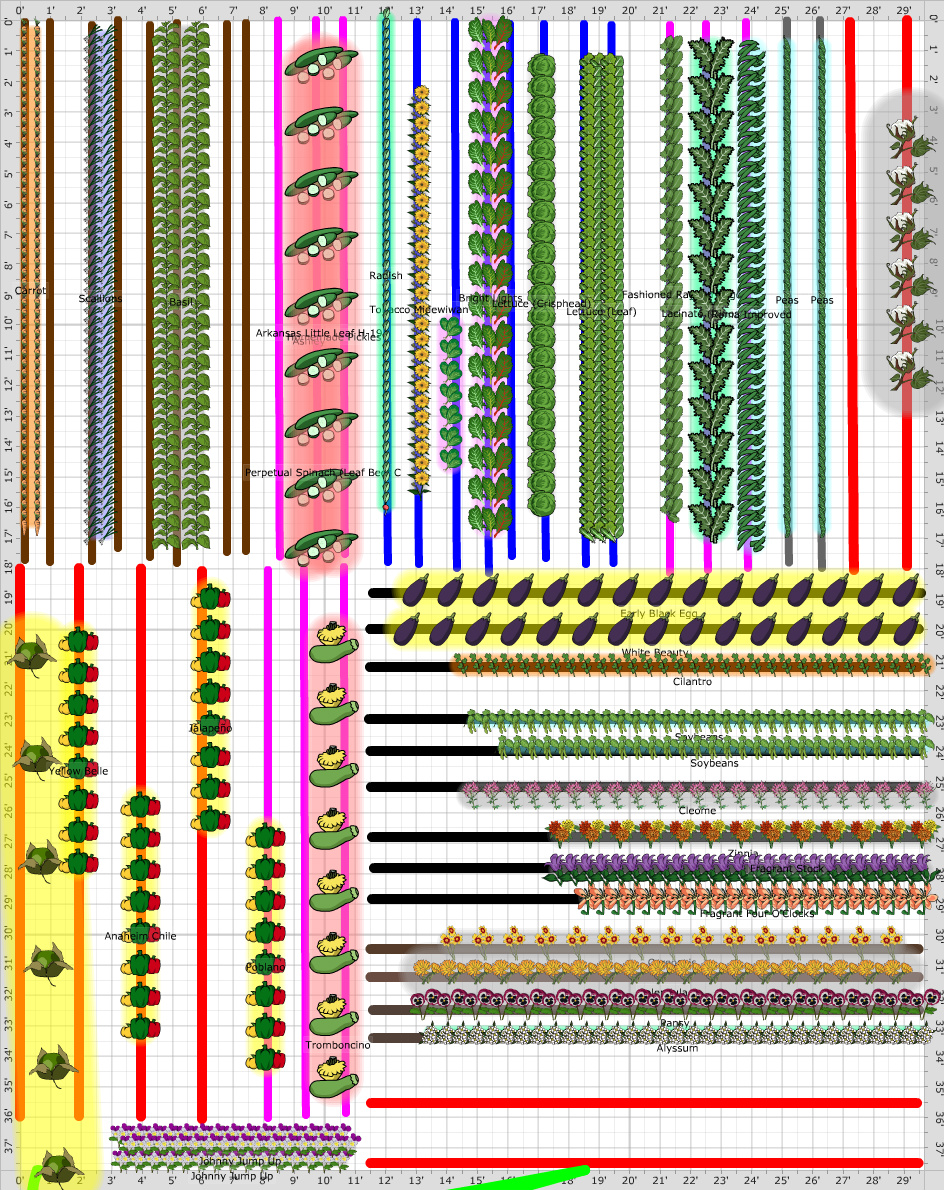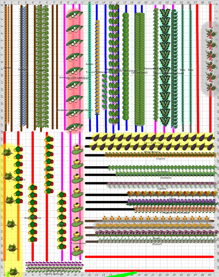 | | Plant | Number | Spacing | Spacing in Rows | Notes |